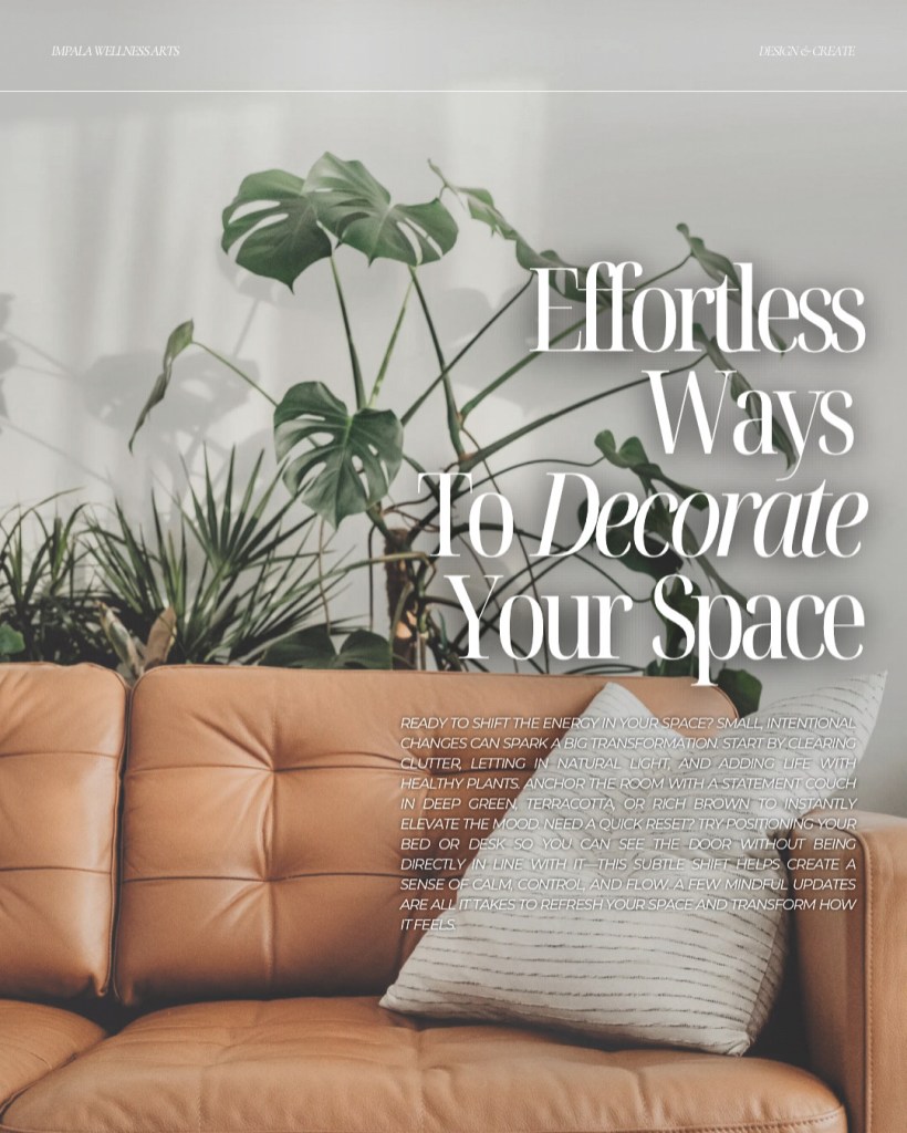 Before you add anything new, start by removing what no longer serves you. Decluttering isn’t just about making things look neat—it’s about creating space for clarity, calm, and creativity. Let go of outdated decor, excess paperwork, or items that feel heavy. This lightens the energy instantly.